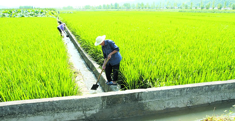8月5日,湖北省十堰市房縣軍店鎮(zhèn)上茅坪村用水協(xié)會管水員向灌區(qū)農(nóng)田放水。近年來,房縣不斷改革農(nóng)村調(diào)水、用水體制,成立村級農(nóng)民用水協(xié)會,由農(nóng)民管水員科學管水,年均節(jié)水1660萬立方米。