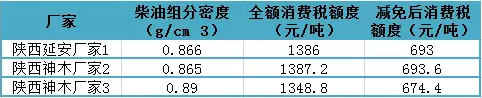 表1 陜西煤焦油加氫廠家預(yù)估柴油組分消費稅征收額度表