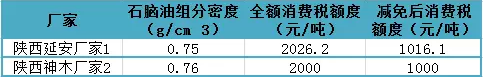 表2 陜西煤焦油加氫廠家預(yù)估石腦油消費稅征收額度表