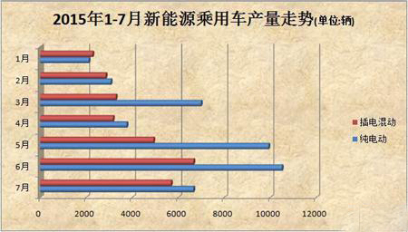 7月份,我國純電動乘用車生產(chǎn)6657輛,同比增長79%,插電式混合動力乘用車生產(chǎn)5688輛,同比增長4.5倍;1-7月,純電動乘用車累計生產(chǎn)4.30萬輛,同比增長2倍,插電式混合動力乘用車累計生產(chǎn)2.61萬輛,同比增長4倍。