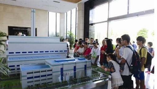 市民觀看垃圾焚燒發(fā)電廠生產(chǎn)工藝流程模型