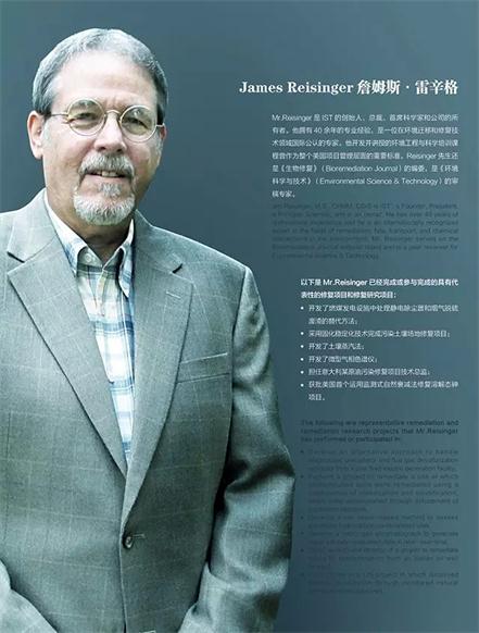 首席環(huán)境科學(xué)家詹姆斯•雷辛格(James Reisinger)是IST的創(chuàng)始人、總裁、首席科學(xué)家和公司的所有者,擁有40余年的專業(yè)經(jīng)驗(yàn),是一位在環(huán)境遷移和修復(fù)技術(shù)領(lǐng)域國際公認(rèn)的專家。他開發(fā)并講授的環(huán)境工程與科學(xué)培訓(xùn)課程曾作為整個(gè)美國項(xiàng)目管理層面的重要標(biāo)準(zhǔn)。同時(shí),詹姆斯•雷辛格(James Reisinger)還是《Bioremediation Journal》的編委,是《Environmental Science & Technology》的審稿專家。