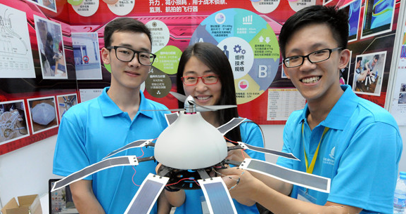 上海理工大學(xué)學(xué)生設(shè)計(jì)的“結(jié)合科恩達(dá)效應(yīng)的微型太陽(yáng)能戰(zhàn)術(shù)偵察機(jī)”,可用于戰(zhàn)術(shù)偵察、監(jiān)測(cè)、航拍。