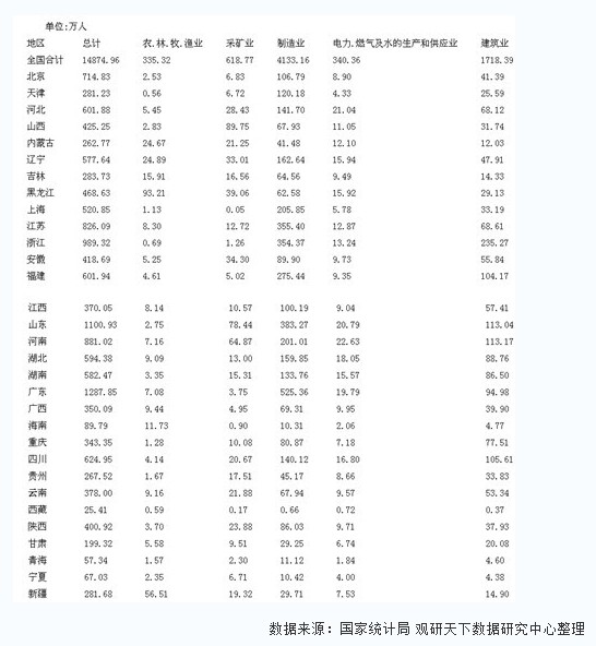 中國各省市2013年一季度電力燃氣和水生產(chǎn)供應(yīng)業(yè)全部單位人員就職情況統(tǒng)計