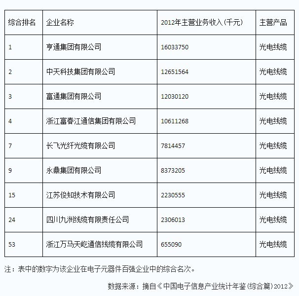 2013年中國電子元器件光電線纜百強(qiáng)企業(yè)綜合排名