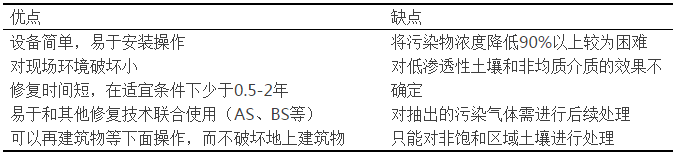 優(yōu)缺點:當土壤細粒物質(zhì)含量大,含水率高時,需要增大抽真空的能力,使修復(fù)費用增加;當土壤有機質(zhì)含量高或極度干燥時,其對有機物的吸附容量大,SVE去除效率降低。
