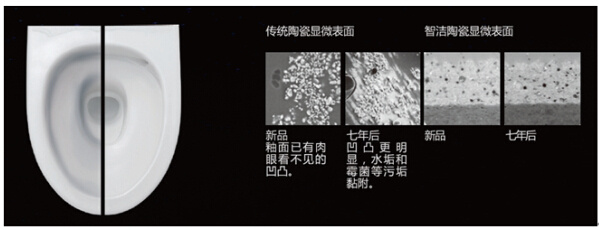 智潔技術(shù)(Cefiontect)的奧秘其實(shí)就在TOTO創(chuàng)新的陶瓷釉藥中。特殊的陶瓷專用釉藥,在陶瓷表面形成了超越納米尺度的超平滑表面,不給污垢容身的空隙,徹底杜絕污垢黏附和黑斑產(chǎn)生。不必使用過多的水和清潔劑,減少二次污染,讓坐便器的日常打理也更為簡單。