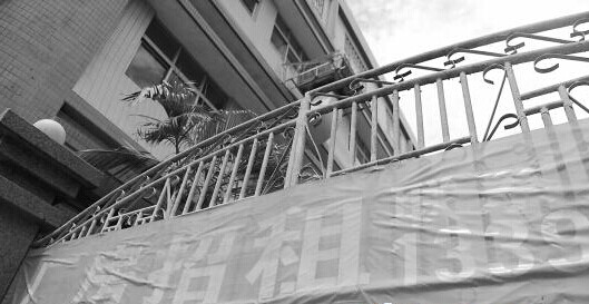 在該條路上,名太子服飾有限公司也掛出了廠房出租3F/4F、每層1250平方米的條幅。在條幅的一側(cè),還有承接貼牌加工的廣告。該公司一位孫先生介紹,廠房是老板的,原先2、3、4層都是生產(chǎn)車間,現(xiàn)在生產(chǎn)車間縮小到了2樓,3、4層出租,但只租給辦公用。