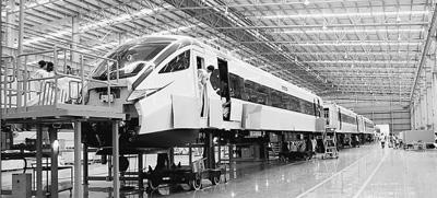 走進(jìn)總裝聯(lián)合廠房,最先跳入眼簾的是4節(jié)初具規(guī)模的高速列車車廂,這是為馬來西亞交通部量身打造的米軌高速列車。這筆訂單共10列6節(jié)編組列車,除了4列在中國國內(nèi)生產(chǎn)外,其余6列均將于今年年底前在東盟制造中心完成生產(chǎn)制造和調(diào)試工作。