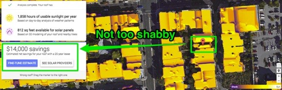你只要在谷歌提供的工具中搜索自家地址就可以獲得相關(guān)信息,進(jìn)而判斷你是否適合使用太陽(yáng)能電池板這種可再生能源。