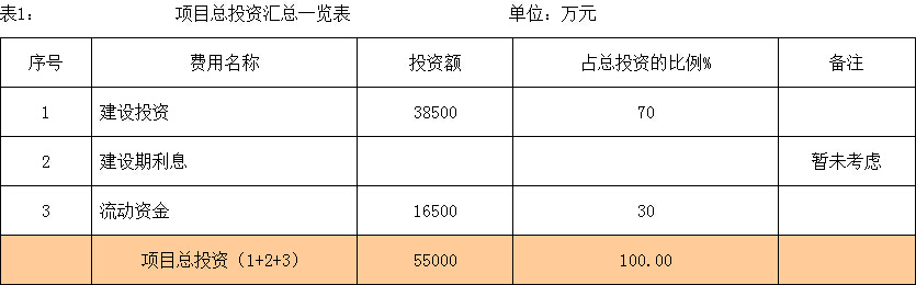 1.3.1項目總投資(詳見表1)