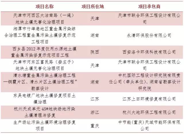 表2 2015 年下半年預(yù)計(jì)招標(biāo)的土壤修復(fù)項(xiàng)目