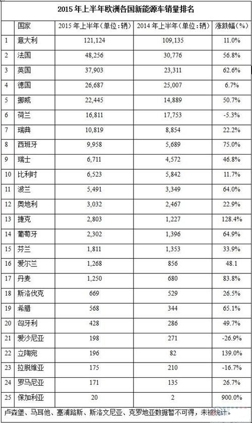 以下是蓋世汽車網整理的歐洲各國上半年新能源車銷量排名: