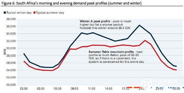 圖:南非夏冬兩季早晚用電高峰的電力需求對比