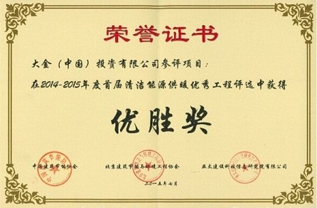 7月20日,由北京建筑節(jié)能與環(huán)境工程協(xié)會(huì)、中國(guó)建筑科技集團(tuán)亞太建設(shè)科技信息研究院、中國(guó)建筑節(jié)能協(xié)會(huì)聯(lián)合發(fā)起的“清潔能源建筑應(yīng)用技術(shù)聯(lián)盟成立暨藍(lán)天杯頒獎(jiǎng)大會(huì)”在北京國(guó)家會(huì)議中心召開。會(huì)議上,還對(duì)2014年度清潔能源優(yōu)秀工程——藍(lán)天杯項(xiàng)目進(jìn)行了表彰頒獎(jiǎng)。經(jīng)過層層評(píng)選,在69家清潔能源設(shè)備生產(chǎn)研發(fā)和系統(tǒng)集成施工企業(yè)的98個(gè)項(xiàng)目中,大金空調(diào)“北京市通州區(qū)漷縣鎮(zhèn)石槽村FW項(xiàng)目”榮獲優(yōu)勝獎(jiǎng)。