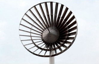澳大利亞可再生能源公司研發(fā)一款新型風(fēng)電機(jī),盡管額定功率只有20千瓦,但公司聲稱該風(fēng)電機(jī)非常安靜。風(fēng)輪直徑20英尺,有30支葉片,從輪轂向外發(fā)散,并由一圓環(huán)連接,該圓環(huán)也防止氣流從葉尖溢出,這也是傳統(tǒng)風(fēng)電機(jī)組空氣噪音的主要來源。