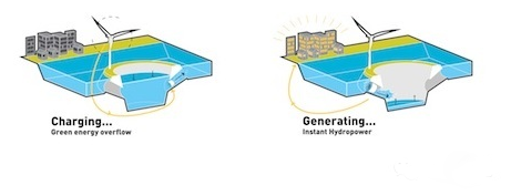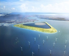 丹麥考慮將來全國完全依賴風(fēng)電,為解決風(fēng)能間歇性問題,研究機(jī)構(gòu)提出了一個綠色儲能島(綠能島)的概念。綠能島抽水儲能-一種已獲廣泛利用的儲能技術(shù),常規(guī)抽水儲能系統(tǒng)使用有高度差的兩個水庫,利用水的勢能發(fā)電。在負(fù)荷低谷區(qū)抽水儲能,需要時則放水發(fā)電。 而綠能島在大海中建造一個人工瀉湖,低谷時將瀉湖中的海水抽出,需要是將海水放入瀉湖發(fā)電。
