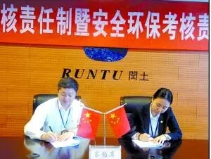 日益嚴(yán)格的環(huán)保法規(guī)讓業(yè)內(nèi)染料企業(yè)對清潔生產(chǎn)越來越重視。今年5月,閏土股份公司各相關(guān)負(fù)責(zé)人簽訂了2015年安全環(huán)??己素?zé)任書。