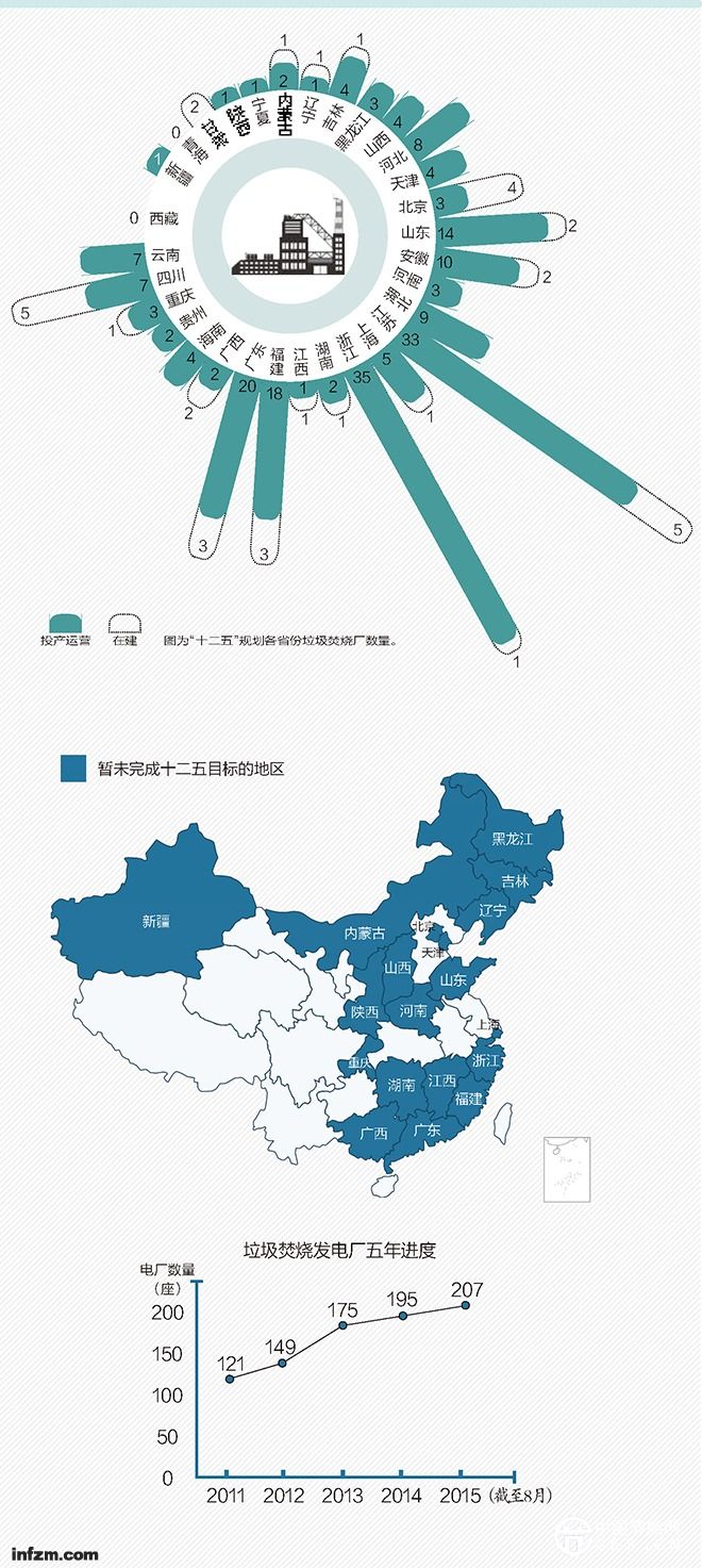 安徽省規(guī)劃“十二五”垃圾焚燒處理規(guī)模是5650噸/日,而實(shí)際目前已建成的就有7450噸/日;云南省的規(guī)劃目標(biāo)是6450噸/日,實(shí)際已建成7000噸/日,二者都超額完成了目標(biāo)。