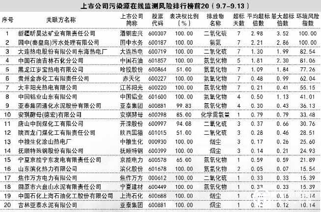今日證券時(shí)報(bào)與公眾環(huán)境研究中心聯(lián)合發(fā)布的“上市公司污染源在線監(jiān)測(cè)風(fēng)險(xiǎn)排行榜前20”(以下簡(jiǎn)稱“環(huán)保榜”)再發(fā)榜。本期榜單顯示,企業(yè)自行監(jiān)測(cè)平臺(tái)顯示污染物排放超標(biāo)的情況出現(xiàn)“兩極分化”。6家企業(yè)一周天天超標(biāo),而一周僅超標(biāo)一天的企業(yè)也創(chuàng)新高。