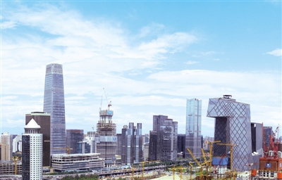 6月11日拍攝的藍(lán)天白云下的北京中央商務(wù)區(qū)建筑群。最近兩天,北京接連出現(xiàn)晴好天氣,藍(lán)天與白云相映成趣,襯托出城市的無限風(fēng)光。 “今天只想做一件事,看天!”北京市民劉先生說。從公園景區(qū)到街角巷尾,許多市民拿起相機(jī),拍下難得的“北京藍(lán)”。一時(shí)間,市民們的微信朋友圈被海量的“北京藍(lán)”圖片刷爆了。