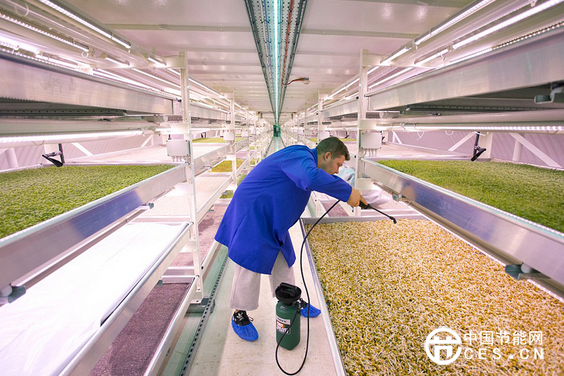 據(jù)報道,這個地下農(nóng)場屬于一家名為“0碳食品”的公司。這家公司的主要業(yè)務(wù)是通過水耕的方法在地下農(nóng)場生產(chǎn)口味濃郁的微型綠色植物。這個地下農(nóng)場種植微型綠色植物的過程比較簡單:起初,將各種植物的種子放在木質(zhì)纖維漿上,幾天后,再將這些種子轉(zhuǎn)移到有LED燈叢照射的架子上。農(nóng)場內(nèi)的LED燈全天18個小時都是明亮狀態(tài)。同時,強力風扇會將農(nóng)場內(nèi)的溫度保持在21℃至23℃。