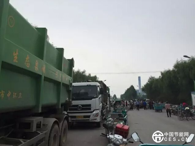 2015 年9 月10 日,村民圍堵濟(jì)南市生活廢棄物處理中心門(mén)口公路,垃圾運(yùn)輸車只能??吭诼愤?,無(wú)法進(jìn)廠。