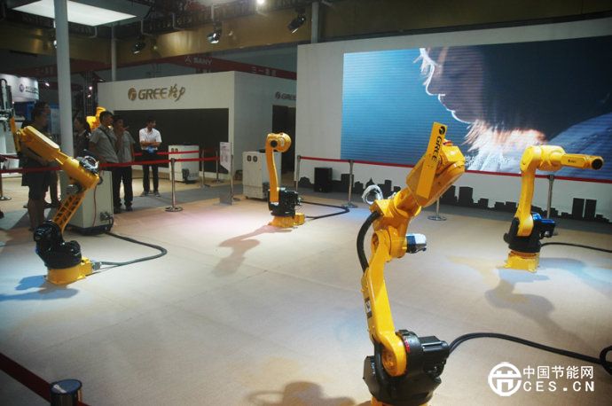 從網(wǎng)上的圖片上我們可以看出,在格力的工廠,5個(gè)桔黃色的機(jī)器人站成一排,像人一樣靈活地?fù)]動(dòng)著“手臂”,自如地“抓取”零部件,整個(gè)流程銜接得很流暢,快速而有序。據(jù)悉,雖然這條生產(chǎn)線上的機(jī)器人是進(jìn)口的,但這條由機(jī)器人及相關(guān)設(shè)備組成的生產(chǎn)線卻是由格力自主設(shè)計(jì)研發(fā)的。也就是說(shuō),該機(jī)器人本體是外購(gòu)的,但整個(gè)集成方案核心內(nèi)容是格力自己完成的。上海家電網(wǎng)了解到,目前負(fù)載8公斤的機(jī)器人,格力已基本都能自己搞定,12公斤、20公斤、50公斤的,正在進(jìn)行到最后的試制量產(chǎn),180公斤的,到今年年底之內(nèi),基本上也可以全面實(shí)現(xiàn)自制。