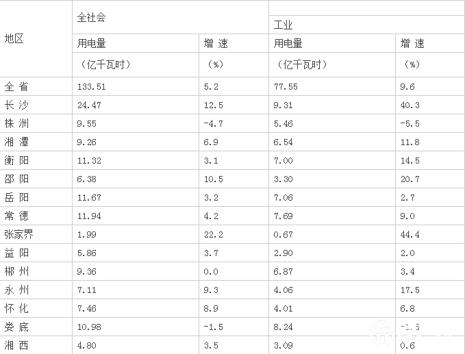 據(jù)湖南省統(tǒng)計局?jǐn)?shù)據(jù)顯示,8月份,全省全社會用電量為133.51億千瓦時,同比增長5.2%,其中,工業(yè)用電量為77.55億千瓦時,增長9.6%。1-8月,全省全社會用電量為961.09億千瓦時,增長2.0%;其中,工業(yè)用電量為574.97億千瓦時,下降1.0%。
