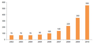 日本服務(wù)機器人市場規(guī)模呈現(xiàn)爆發(fā)性增長趨勢(億日元) (注:圖片來源于網(wǎng)絡(luò))