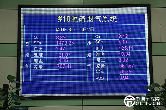圖為華電天津軍糧城電廠#10脫硫煙氣系統(tǒng)排放指標(biāo)
