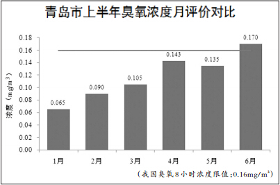 2015年上半年,青島市O3濃度為0.136mg/m3,未超出國家二級標(biāo)準,在省內(nèi)6市(青島、濟南、濰坊、日照、煙臺、威海)中濃度最低,在全國74城市中濃度排名(由低到高)處于中下游水平;市內(nèi)6區(qū)O3濃度嶗山區(qū)最高、