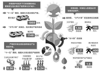 那么,我國的環(huán)境保護對經(jīng)濟發(fā)展到底有何影響?環(huán)保能否成為優(yōu)化經(jīng)濟發(fā)展的抓手?專家們認為,讓事實和數(shù)據(jù)說話,是最有力的回答。