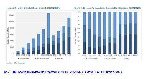 從2012年開始,發(fā)電業(yè)務用百萬瓦級光伏電站的比例在美國市場就占了50%以上,預計2015~2016年,該領域的比例將提高至約60%。GTM Research預測,其中2015年發(fā)電業(yè)務用將達到約4GW,2016年將達到近8GW。