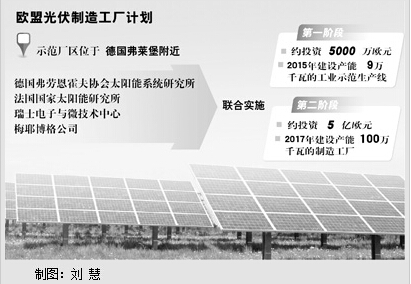 據(jù)沃森介紹,這個項(xiàng)目計(jì)劃分兩個階段推進(jìn):第一階段約投資5000萬歐元,在2015年建設(shè)產(chǎn)能9萬千瓦的工業(yè)示范生產(chǎn)線;第二階段約需投資5億歐元,到2017年建設(shè)產(chǎn)能100萬千瓦的制造工廠。目前第一階段計(jì)劃正在緊鑼密鼓實(shí)施中,第二階段還處于融資階段。