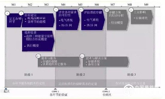 此外,法國政府和一些利益相關(guān)企業(yè)(法國電力公司、法國蘇伊士燃氣集團、德國意昂集團、阿爾斯通、帥福得等)資助了一項關(guān)于法國潛在儲能市場的研究。該研究共分為三個階段,首先是定義各項環(huán)節(jié),收集戰(zhàn)略要素并完成各個環(huán)節(jié)的建模工作,確定能源愿景,形成概要并執(zhí)行,明確需求與服務(wù)。其次,對電氣系統(tǒng)、冷/熱網(wǎng)的需求進行評價,并評估其潛在市場。同時,結(jié)合技術(shù)問題,構(gòu)建儲能體系并提供備用解決方案。最后,根據(jù)構(gòu)建的經(jīng)濟模型分析儲能方案,并分析儲能系統(tǒng)對整個工業(yè)的影響。