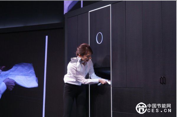 它的名字叫做laundroid。在博覽會上,工作人員進行了一些展示——比如在衣柜中放入一個白襯衫等等,只需要把它放進去,不用任何多余的動作,甚至不需要按下任何開關,衣柜就會自動將它疊整齊。