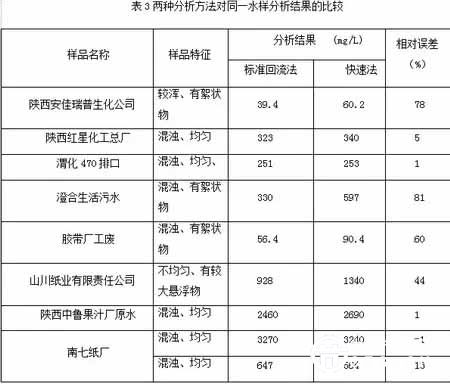 另一方面,如果水樣僅靠手搖混勻方式而未采取理想的均化預(yù)處理措施,直接用5mL移液管吸取水樣,往往會因為移液管吸嘴尖、窄的原因,而不能均勻地吸入顆粒物或更嚴重的是出現(xiàn)懸浮物堵塞移液管吸嘴的情況,這樣都將嚴重影響CODcr測定的準確度和精密度。并且測試中取樣量愈少,造成的隨機誤差就愈大。所以,沒有十分理想的水樣均化預(yù)處理,CODcr快速測定法對上述水樣是沒有實際意義的。表3數(shù)據(jù)是一組對比實驗的結(jié)果。