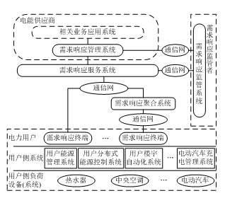 電力用戶側(cè)需求響應(yīng)終端是電力DR系統(tǒng)的核心組成部分。電力用戶通過需求響應(yīng)終端,支撐用戶側(cè)相應(yīng)系統(tǒng)或設(shè)備直接參與需求響應(yīng)。需求響應(yīng)監(jiān)管者通過需求響應(yīng)監(jiān)管系統(tǒng)監(jiān)督管理需求響應(yīng)業(yè)務(wù)執(zhí)行,同時包括電價與激勵政策制定、業(yè)務(wù)結(jié)算、資金清算等。