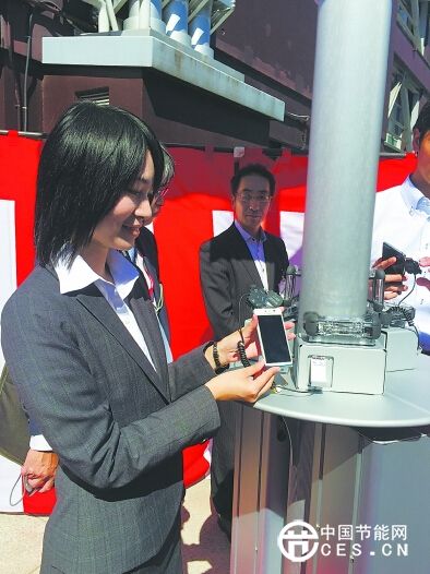 日本首座公共太陽能手機充電站日前在東京塔前亮相,可為周邊居民和觀光游客進行免費手機充電。