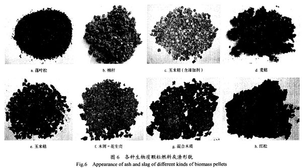 1)不結(jié)渣。落葉松。該燃料在燃燒后的灰渣呈灰黑色的細(xì)小顆粒物,無塊狀的渣塊產(chǎn)生,如圖6a所示。