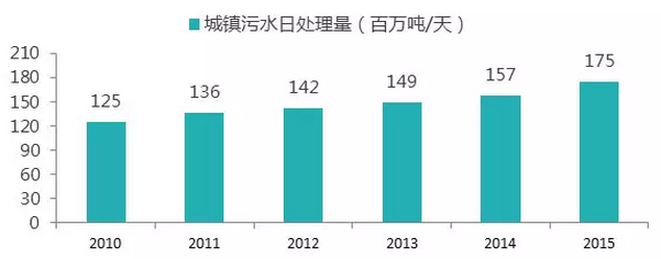 “十二五”以來,全國新增城鎮(zhèn)污水處理能力4800萬噸/日,約可新增服務(wù)人口3億多人;累計污水日處理能力達1.75億噸,與十一五末的1.25億噸相比,增長率達到40%。