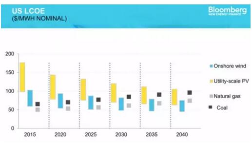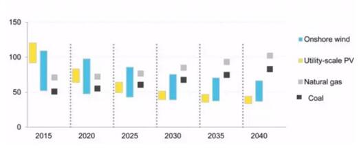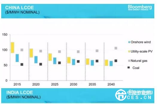 例如,在中國(guó)、印度和歐洲,BNEF預(yù)測(cè)到2020年,光伏發(fā)電的成本將比天然氣更有競(jìng)爭(zhēng)力。而風(fēng)電今天已經(jīng)達(dá)到這種水平了。