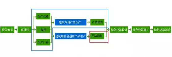 建筑用社會(huì)通用產(chǎn)品生產(chǎn)產(chǎn)業(yè)鏈的產(chǎn)值規(guī)模具體估算范圍應(yīng)如圖1紅色線界定范圍所示,主要包括該產(chǎn)品和材料進(jìn)入流通環(huán)節(jié)后所帶來(lái)的產(chǎn)業(yè)效益。而產(chǎn)品和材料的生產(chǎn)加工環(huán)節(jié)以及前溯過(guò)程不含在綠色建筑產(chǎn)業(yè)鏈中。