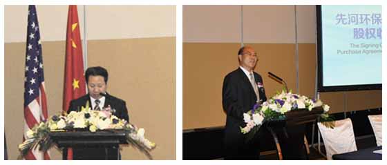 隨后,先河環(huán)保董事長、總裁李玉國先生與美國SunsetLabInc.公司(以下簡稱“Sunset”)董事長RobertCary先生在兩國政府領(lǐng)導(dǎo)的見證下簽署正式股權(quán)收購協(xié)議。