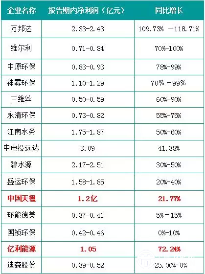 維爾利在10月14日的公告中披露前三季度實(shí)現(xiàn)歸屬于上市公司股東的凈利潤(rùn)比上年同期上升70%-100%,而神霧環(huán)保也預(yù)計(jì)前三季度比上年同期上升70﹪—99﹪,中原環(huán)保前三季度凈利潤(rùn)將增加78%-99%,盈利8300-9300萬(wàn)元。