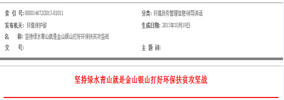 環(huán)保部發(fā)布堅(jiān)持綠水青山就是金山銀山打好環(huán)保扶貧攻堅(jiān)戰(zhàn),詳情如下: