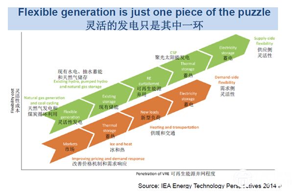 對此,睿博能源智庫中國項目主任FrederickWeston認(rèn)為,可再生能源的可變性將帶來嚴(yán)峻挑戰(zhàn),靈活性顯得非常重要。所謂“靈活性”,是指應(yīng)對負(fù)荷需求和發(fā)電供給變化的能力。無論是否納入具有可變性的可再生能源發(fā)電,還是針對可調(diào)度性不太確定的發(fā)電機(jī)組,雖然在美國大多數(shù)地區(qū),靈活性并未得到資金補(bǔ)償,但這種局面正在改變。