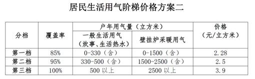 按照此前公布的兩套聽證方案,兩套方案均保障了85%的居民家庭用氣價格不調(diào)整,用氣不增支;10%的二檔家庭,方案一和二的用氣年增支最高分別不超71.4元和不超37.4元;年用氣量超過二檔后,用氣越多,增支越多。