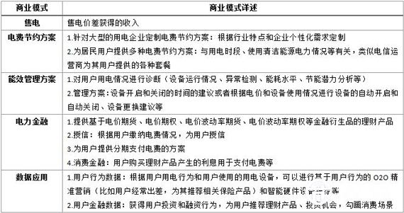 我們認(rèn)為售電市場化后售電主體的商業(yè)模式較為豐富,且售電的市場規(guī)模將遠(yuǎn)超過一萬億元。我們認(rèn)為售電市場化后售電主體可能的商業(yè)模式如下表所示: